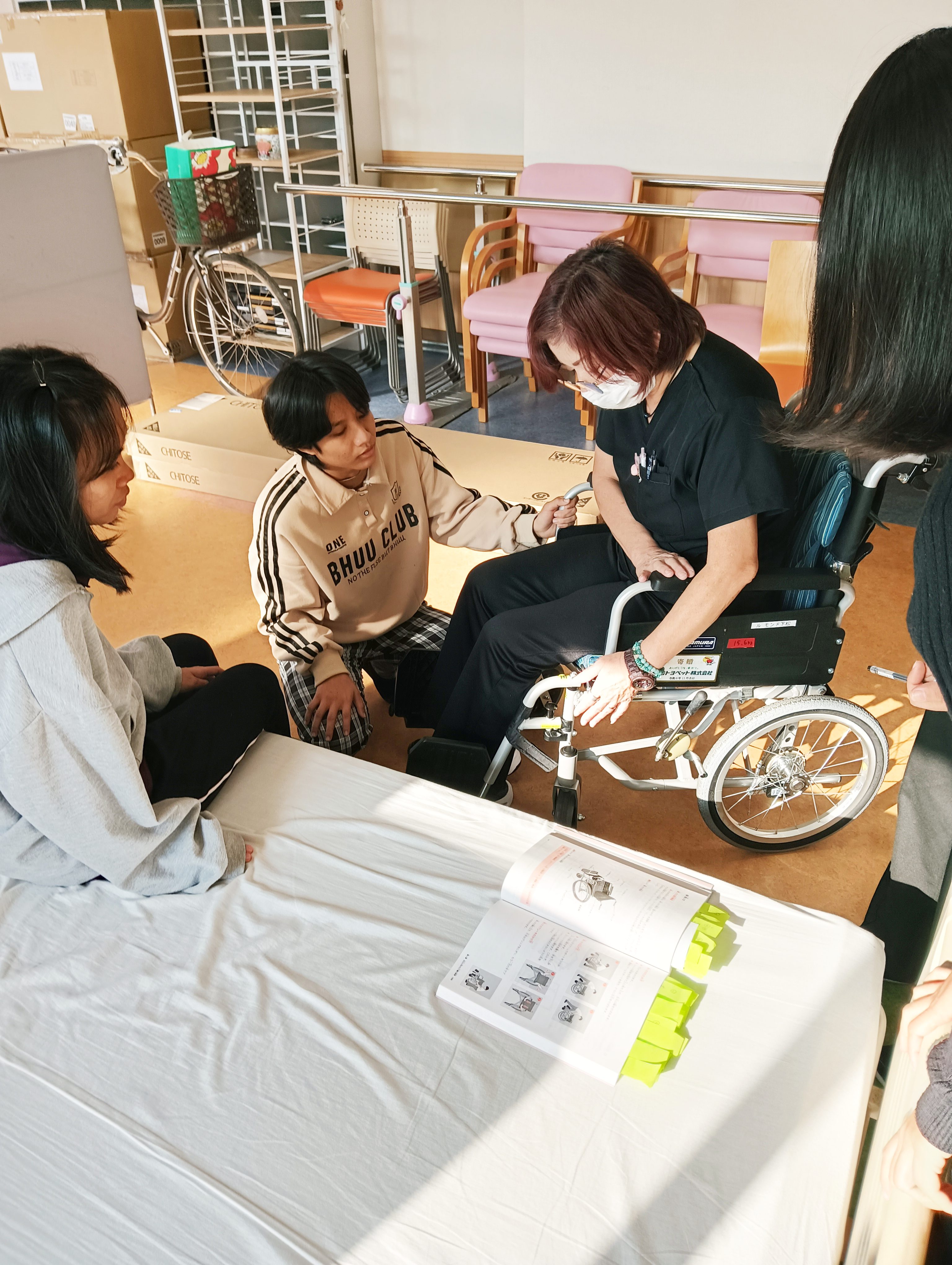 母国と日本では実技講習にも若干の差があり、また、雇用する施設側の立場になり、より即戦力になれるよう研修を行っております。